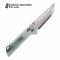 Le manche est conçu en G10 Jade (Naturel) avec une texture Frag Pattern (quadrillage tactique) pour un grip optimal et un look technique translucide très recherché. Son système de verrouillage Crossbar Lock permet une manipulation ambidextre ultra-fluide et sécurisée, idéale pour une ouverture et une fermeture d'une seule main. Ce couteau massif et robuste est une véritable démonstration de savoir-faire pour les utilisateurs d'EDC les plus exigeants.