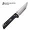 Le manche est composé de plaquettes en G10 Noir, usinées avec une texture profonde pour garantir un grip infaillible. Le Chop est équipé du système de verrouillage Crossbar Lock, permettant une manipulation ambidextre fluide et sécurisée. Monté sur des roulements à billes en céramique, ce couteau se déploie avec une précision mécanique via son ouverture flipper ou son trou de pouce (Thumb Hole).