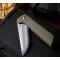 Ses caractéristiques principales incluent une lame de style TANTO en acier japonais SLD-Magic San Mai. Cette technologie de lame brevetée présente une finition spéciale à trois couches avec des motifs authentiques forgés à chaud et un fini gradient, rappelant les épées de samouraï traditionnelles. L'acier SLD-Magic est conçu pour être résistant, durable et très tranchant. Le manche est en G10 vert, offrant non seulement un style certain mais aussi une prise en main ferme et fiable dans toutes les conditions. Le couteau est doté de roulements en céramique et d'un cadre en laiton, permettant une ouverture fluide.