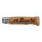 OPINEL propose une édition du N°8 avec un manche en chêne gravé d'une scène de chasse au chien d'arrêt, idéale pour les passionnés de nature.