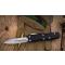 Le déploiement et la rétraction sont assurés par un mécanisme automatique à double action via un bouton coulissant. Le manche de 11,43 cm est en Aluminium 6061-T6 noir avec des inserts de grip pour une manipulation sécurisée. Le couteau, d'une longueur totale de 19,05 cm, intègre également un brise-vitre et un clip de poche.