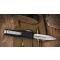 La lame de 7,62 cm présente une épaisseur de 3,05 mm et arbore une forme Dague (Dagger) à double tranchant et tranchant lisse. Elle est fabriquée en acier premium Bohler M390, réputé pour sa dureté de 60-62 HRC, son excellente rétention du tranchant et sa haute résistance à la corrosion. La finition est Stonewash.