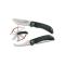En appuyant sur le bouton de verrouillage, la lame peut être tournée et le couteau peut être utilisé au besoin. Lame en acier inoxydable, poignée en caoutchouc pour une prise en main sûre. Livré avec sac en nylon.