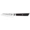 Le Couteau d'Office Kotai Bunka se distingue par sa lame en acier inoxydable 440C, réputée pour sa robustesse et sa résistance à la corrosion. Ce couteau offre un tranchant lisse, idéal pour des découpes précises et nettes. La lame, de profil office, mesure 90 mm, ce qui permet une manipulation aisée pour les tâches culinaires délicates.