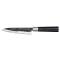 Le couteau Office Samura SUPER 5 Utility présente une lame en acier VG-10, reconnue pour sa durabilité et son tranchant exceptionnel. Son manche en micarta noir assure une prise en main confortable. La lame damassée à cinq couches allie esthétique et performance, et l'ensemble est livré dans un coffret élégant avec une pochette en tissu.
