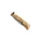 Couteau OLD BEAR lame acier damas inox DS93X, avec virole de sécurité en laiton brossé (position ouverte/fermée), manche 11 cm olivier.