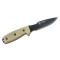 Couteau EDC Ontario RAT-3 Caper 1095 Black Coated Blade Micarta Handles Leather Sheath Made USA à lame fixe - Longueur totale 20.80cm - Longueur de lame 10.49cm - Epaisseur de lame 3.22cm - Lame de type drop point plain edge finition black - Affutage flat - Construction d'une seule pièce - Full Tang - Lame en acier carbone - Dureté 58 59HRC - Plaquettes du manche en micarta - Trou dans le manche pour dragonne - Etui cuir - Made In USA