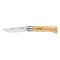 Le couteau de poche Opinel numéro 10 est poinçonné du symbole officiel de la Main Couronnée. Il est fabriqué dans les ateliers de la marque savoyarde et est composé exclusivement de matériaux de choix : bois massif de hêtre pour le manche (longueur de manche : 130 mm), acier inoxydable pour la lame (longueur de lame : 100 mm). Poids de ce couteau pliant : 75 grammes.