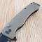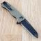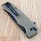 Le manche de 11,76 cm une fois fermé est fabriqué en GFN texturé marron, un polymère durable qui offre une prise en main solide et confortable. Le couteau s'ouvre facilement grâce à son prolongement de soie (flipper) et est sécurisé par un bouton de verrouillage ("Button Lock"), garantissant une manipulation sûre. Il dispose également d'un trou pour cordon de sécurité et d'un clip de poche pour un transport pratique.