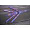 Longueur ouvert : 22,5 cm. Poids : 105 g. Lame tranchante en acier inoxydable de 9,5 cm colorée. Manche antidérapant en acier coloré, dépliable en deux. Verrouillage sécurité et clip ceinture sur le manche.