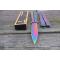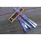 Longueur ouvert : 22 cm. Poids : 105 g. Lame tranchante en acier inoxydable style titane de 9,5 cm. Manche antidérapant en acier inoxydable style titane en plaques, dépliable en deux. Verrouillage sécurité au bout du manche avec clip ceinture.