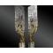 Lame en acier à simple tranchant, terminée en pointe, poinçonnée et gravée au talon sur les deux pans d’une console où se détache sur fond d’or ce qui semble vraisemblablement être des adiantum pedatum enroulés. Deux animaux sont gravés sur le dessus: un chien et un cerf.