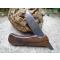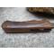 Longueur fermé 11cm hors lentille - Lame en acier carbone 1075 - Lame de type drop point plain edge finition miroir - Lentille - Longueur ouvert 19.5cm - Manche en bois - Fabrication artisanale -