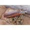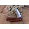 Longueur fermé 10.50cm hors lentille - Vis de serrage - Lame en acier carbone 1055 - Lame de type sheepfoot plain edge finition satin - Lentille de 3.5cm - Longueur ouvert 19cm - Manche bois - Fabrication artisanale -