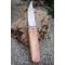 Longueur fermé 11cm hors lentille - Lame en acier damas 128 Couches - Lame de type trailing point plain edge - Lentille - Longueur ouvert 19.5cm - Manche en bois d'olivier - Fabrication artisanale