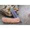Longueur fermé 10.5cm hors lentille - Lame en acier damas 128 Couches - Lame de type trailing point plain edge - Lentille - Longueur ouvert 18cm - Manche en bois d'olivier - Fabrication artisanale - Vis de serrage de la lame