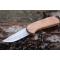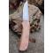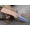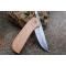 Longueur fermé 10.5cm hors lentille - Lame en acier damas 128 Couches - Lame de type trailing point plain edge - Lentille - Longueur ouvert 18cm - Manche en bois d'olivier - Fabrication artisanale - Vis de serrage de la lame