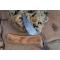 Longueur fermé 10.5cm hors lentille - Lame en acier damas 128 Couches - Lame de type trailing point plain edge - Lentille - Longueur ouvert 19cm - Manche en bois d'olivier - Fabrication artisanale - Les dessins du damas sont uniques & différents pour chaque lame - Idem pour le bois, les veines sont différentes