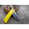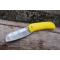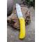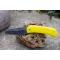 Longueur fermé 10.5cm hors lentille - Lame en acier damas 128 couches - Lame de type sheepfoot - Lentille - Longueur ouvert 18cm - Manche en résine yellow - Fabrication artisanale - Vis de serrage de la lame