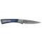 Un manche en aluminium, aux nuances bleu et gris, assure une prise en main confortable et sécurisée. Ce matériau léger et durable s'accompagne d'une finition satinée de la lame, ajoutant une touche d'élégance à l'ensemble.