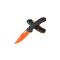 Le manche en carbone, de finition grise, confère au couteau une légèreté et une robustesse remarquables, tout en offrant une prise en main confortable. La couleur orange de la lame, obtenue grâce à une finition Cerakote, ajoute une touche d'originalité et de visibilité, idéale pour les environnements extérieurs. Le mécanisme d'ouverture et de sécurité Axis Lock garantit une utilisation fiable et sécurisée, même dans des conditions exigeantes.