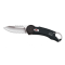 Couteau de chasse Pliant BUCK n°750 BK, lame à trou et à dents, acier inox avec système de sécurité à l'ouverture et à la fermeture, manche 11cm gomme noir avec anneau décapsuleur et clip