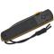 Manche ergonomique en acier PVD noir avec inlay en G10 noir et accents dorés pour une prise en main confortable et un style unique.