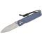 Manche ergonomique en G10 bleu pour une prise en main confortable.