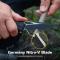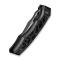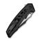 Le Civivi Anaaki est doté d'une lame de 7,57 cm de style Clip Point avec un tranchant lisse, fabriquée en acier inoxydable Nitro-V. Cet acier est apprécié pour sa résistance à la corrosion et sa facilité d'aiguisage, avec une dureté de 59-61 HRC. La finition black stonewashed / satinée bicolore de la lame lui confère un look distinctif et une durabilité accrue. L'émouture plate assure une excellente performance de coupe. Le manche de 10,36 cm (longueur fermée) est en aluminium noir squelettisé, offrant un design unique et une légèreté remarquable. L'entretoise est en acier inoxydable noir.
