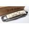 Design Classique et Élégant : Le style Trapper traditionnel est rehaussé par le manche en os blanc lisse et l'illustration de cerf, le rendant idéal pour la collection.