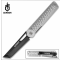 La lame de 8,89 cm (3.5 pouces) de style Tanto est fabriquée en Acier Inoxydable 7Cr17MoV. Elle bénéficie d'une finition durable en Nitruer de Titane Noir (TiNi). L'ouverture est assurée soit par le Flipper Frontal (Front Flipper) pour un déploiement rapide et satisfaisant, soit par l'encoche/trou de pouce.
