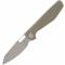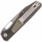 Le manche de 11,43 cm est doté d'une face en plaquette de Micarta Olive et d'une face en acier inoxydable qui constitue le mécanisme de verrouillage Frame Lock sécurisé. Le design est fin (1,02 cm d'épaisseur) pour un port discret. La longueur totale du couteau ouvert est de 20,32 cm et il ne pèse que 99,23 g.