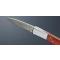 Le manche, fabriqué en plywood et acier, présente une finition élégante en gris et marron, garantissant une prise en main confortable et stable. La longueur totale de 180 mm, avec une lame de 70 mm, permet un équilibre parfait entre portabilité et efficacité. Ce couteau est livré dans un coffret, facilitant son rangement et son transport.