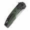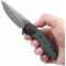 Le manche de 9,65 cm (3.80") est doté de plaquettes en Micarta Vert, un matériau léger, solide et esthétique qui offre une excellente prise en main. La platine du manche est en Titane. Le verrouillage est assuré par un Frame Lock robuste, empêchant toute fermeture involontaire de la lame.