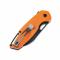 Le manche de 11,13 cm est équipé de plaquettes en G10 Orange. Cette couleur vive est idéale pour ne pas perdre l'outil et le matériau assure un grip fiable. L'ouverture est facilitée par la Languette Prolongée (flipper) et la Tirette au Pouce (Thumb pull), permettant une action de lame fluide sur roulements à billes. Le verrouillage est assuré par un Liner Lock fiable. Ce modèle comprend un Trou pour lanière et est livré avec une Pochette en Nylon Noir. Son poids est d'environ 102,06 g et sa longueur totale ouverte est de 19,39 cm.