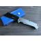 Le manche de 12,07 cm est en Aluminium Anodisé Bleu Ardoise (Slate Blue), offrant légèreté et durabilité. Il est agrémenté d'accents bleu et jaune. Le mécanisme de verrouillage est un Linerlock fiable. Le couteau ouvert mesure 20,96 cm pour un poids léger de 172,36 g.
