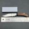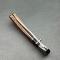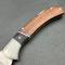 Le manche est en bois brun, un matériau classique qui offre une prise en main confortable. Le couteau est doté d'un mécanisme de verrouillage Lockback, qui assure un blocage sécurisé et fiable de la lame pendant l'utilisation. Un repose-pouce (thumb stud) facilite l'ouverture, et le couteau est pourvu de mitres en acier inoxydable.