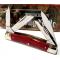 Le manche est fabriqué en os lisse rouge, un matériau qui offre une prise en main confortable et un look distinctif. Les mitres en maillechort (nickel silver) complètent le manche, ajoutant une touche de robustesse et de classicisme.