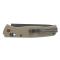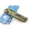 Le manche de 10,8 cm est en G10 vert olive (coloris spécifique GP2), doté d'une texture fine antidérapante qui garantit une prise en main ferme et confortable. Le châssis interne mono-liner assure une construction solide tout en maintenant un poids léger de 70 g.