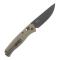 La lame de 8,2 cm est fabriquée en acier 10Cr15CoMoV, un équivalent du célèbre VG-10, offrant une excellente performance de coupe et une bonne tenue du tranchant. Avec une dureté de 58–60 HRC, cette lame de type Drop Point bénéficie d'une finition PVD noir, lui conférant une résistance accrue et une esthétique discrète et élégante. Elle dispose également d'un meulage plat (flat grind) pour une polyvalence accrue.