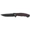 Le manche, conçu en fibre de carbone et titane, assure une prise en main confortable et sécurisée. La finition en noir et rouge ajoute une touche d'élégance et de modernité à l'ensemble. Le clip réversible permet un port pratique et adaptable selon les préférences de l'utilisateur.