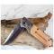 Couteau au design agressif Pliant de Poche avec Sa lame en acier inoxydable style damas tant aux lignes tendues est à ouverture facile mesure 9 cm et possède une sécurité, manche de 12 cm en acier & résine gravé, et poids 165 g. Manche antidérapant résine/acier style bois gravé. Sécurité anti fermeture. Ouverture latérale en sortant du manche. Clip ceinture présent sur le manche. Lame aiguisée en acier inoxydable de 9 cm style damas gravé au laser. Belle affaire pour collectionneur qui souhaite un très beau couteau de haute qualité, Idéal dans une belle collection. Le couteau dédié aux pêcheurs, bricoleurs, campeurs, sculpteurs… L’outil idéal pour apprêter et écorcher un gibier…