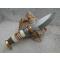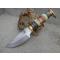 Skinner Couteau Frost Cutlery Chipaway Bowie à lame fixe - Longueur totale 22.86cm - Longueur de lame 11.43cm - Lame en acier carbone 1055 - Garde & pommeau en laiton - Manche en Os & rouleaux de bois - Etui cuir