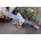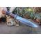 Couteau Poignard Lame Acier Damas 256 Couches Manche Bois Garde Damas Etui Cuir Fabric Artisanale