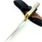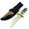 Couteau Poignard de Chasse Marbles Cowboy Skinner Knife Stainless Blade Stag Bone Handle Nylon Sheath à lame fixe - Longueur totale 21.59cm - Longueur de lame 11.43cm - Lame en acier inox - Construction d'une seule pièce - Full Tang - Garde en laiton - Plaquettes du manche en os façon bois de cerf - Etui nylon & cuir
