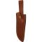 Ses caractéristiques principales résident dans sa large lame Bowie en acier inoxydable avec une finition satinée, offrant une performance de coupe fiable. Le manche est confectionné en bois lamellé, procurant une prise en main confortable et un attrait visuel distinctif. Une garde et un pommeau en acier inoxydable ajoutent à la durabilité et à l'équilibre du couteau. Il est accompagné d'un étui en cuir marron avec passant ceinture pour un transport sécurisé.
