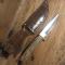 Couteau Poignard de chasse ou de vénerie lame de 2.5cm au plus large, un coté tranchant, poignée synthétique imitation corne, vendu avec son étui cuir d'origine.