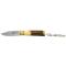 La finition du manche en bois naturel s'harmonise avec la couleur blanche de la lame, créant un design sobre et élégant. Le système de sécurité par virole assure une utilisation sécurisée, évitant toute ouverture accidentelle lors du transport.