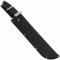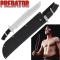 Authentique machette tirée du film Predator (1987) et utilisée par le Major Alan "Dutch" Schaefer (Arnold Schwarzenegger) et ses soldats. De haute qualité, cette fidèle réplique a été soigneusement conçue à partir de l'arme d'origine utilisée dans le film avec une attention particulière portée aux détails et aux finitions. Cette reproduction très solide possède une large lame en acier inoxydable 440 (6,4 cm à son point le plus large) avec une finition grise pour éviter les reflets dans la nuit. La lame est aiguisée sur un côté et vous pouvez l'affûter davantage avec une pierre à aiguiser (prolongement de la lame dans la poignée). Le poids de l'arme en fait une machette de coupe efficace et un couteau de lancer redoutable. La poignée en bois véritable avec une finition noire est renforcée au centre par une bande en acier poli. Sa forme ondulée offre une excellente prise en main (12 cm de long). La garde (9,4 cm de large) et le pommeau sont en acier poli. Livré dans un robuste étui en nylon noir avec un passant de ceinture et une fermeture à bouton-pression qui passe sur la garde pour sécuriser l'arme (53 cm de long ), ce collector ravira les fans de Schwarzenegger et les collectionneurs de machettes fonctionnelles de qualité. À votre tour de détenir l'arme qui vaincra les Predators !
