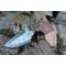 Couteau Push Dagger Damas à lame fixe - Longueur totale 14cm - Longueur de lame 9.5cm - Longueur du manche 8cm - Lame en acier damas 256 Couches - Construction d'une seule pièce - Plaquettes du manche en 2 bois - Full Tang - Etui simili cuir